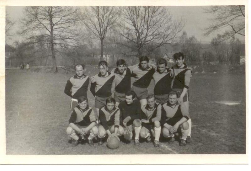 stojící zleva:Mudroch A.,Vávra M.,Honys V.,Tichý L.,Janata M.,Jína M.,Šedina J.,Cink B. dole:Karlík F.,Zeman M.,Halámka M. - r. 1960?